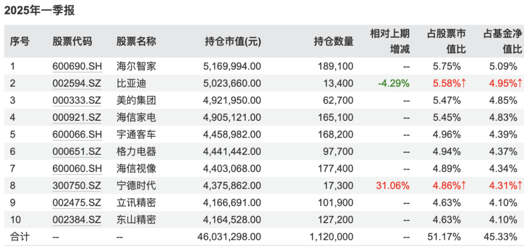 一季度持仓里,基金经理拿的主要是家电、制造业股票。现在流行的“老登股”占了一大半。