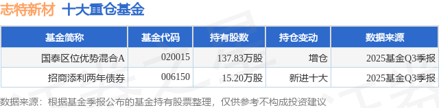 根据2025基金Q3季报公募基金重仓股数据,重仓该股的公募基金共2家,其中持有数量最多的公募基金为国泰基金的国泰区位优势混合A。国泰区位优势混合A目前规模为2.45亿元,最新净值4.6617(12月30日),较上一交易日上涨0.47%,近一年上涨22.96%。该公募基金现任基金经理为智健。