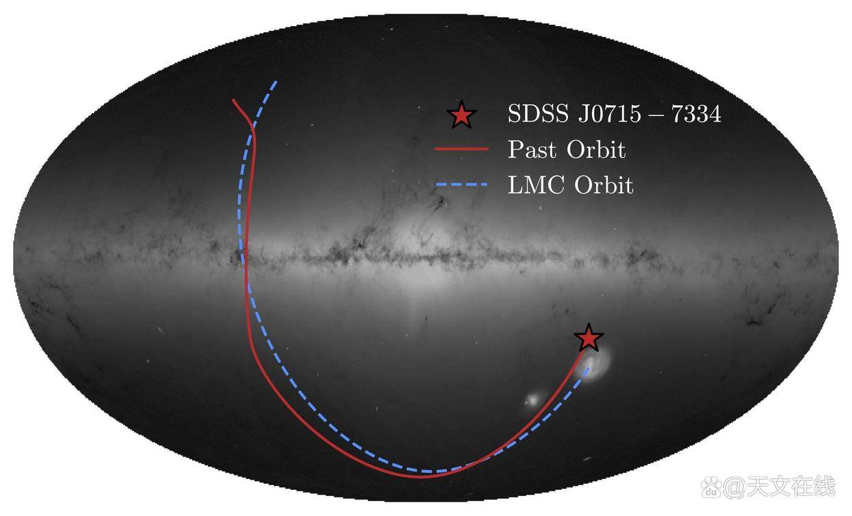 该团队还利用欧洲空间局盖亚任务的数据,测定了这颗恒星与太阳的距离及其在银河系中的运动轨迹。通过追溯这颗恒星存在数十亿年来的运动轨迹,他们发现它起源于银河系最大的伴星系——大麦哲伦云(LMC)。对该恒星光谱的进一步分析还显示,它含有的碳极少,几乎无法检测到,这为了解其形成环境提供了更多线索。