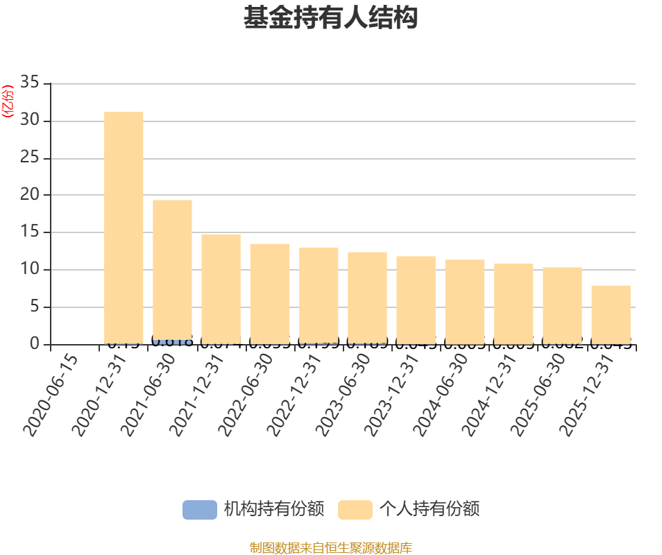 截至2025年12月31日,基金持有人共计1.88万户,合计持有7.88亿份。其中管理人员工持有14.57万份,占比0.02%,机构持有份额占比0.54%,个人投资者占比99.46%。