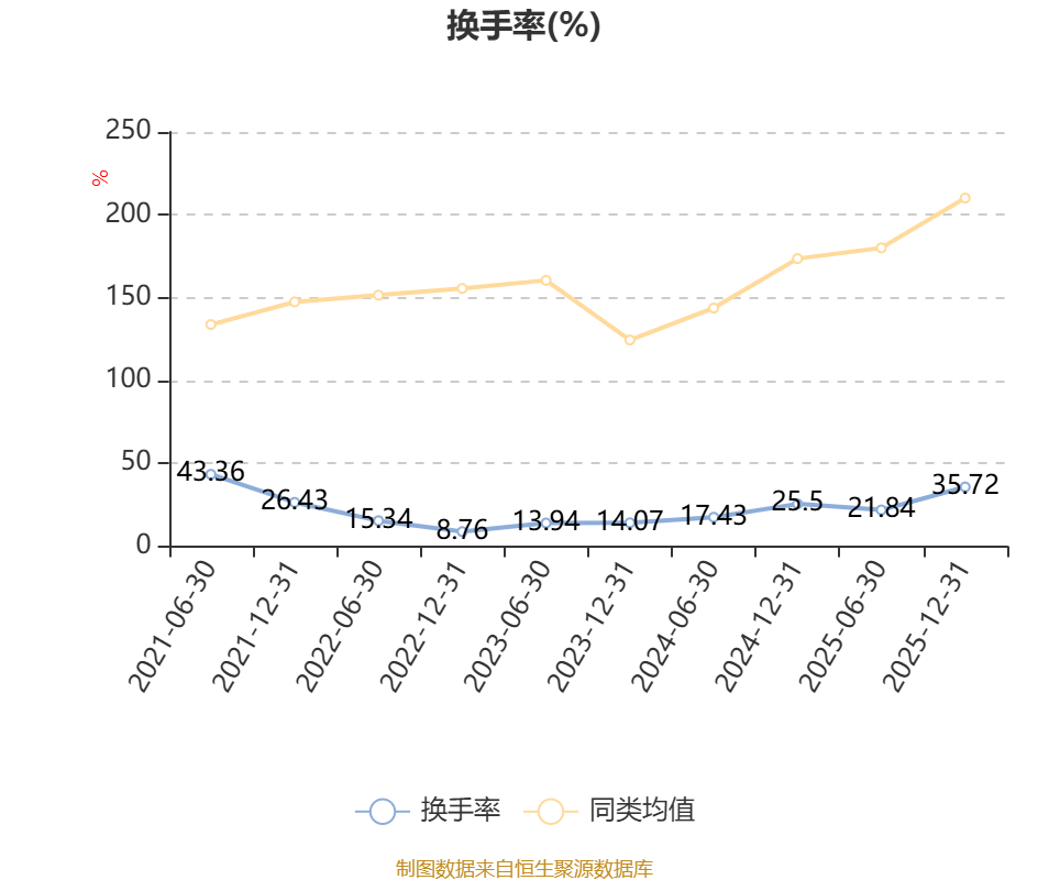 截至2025年12月31日,基金最近一年换手率约58.21%,持续低于同类均值。