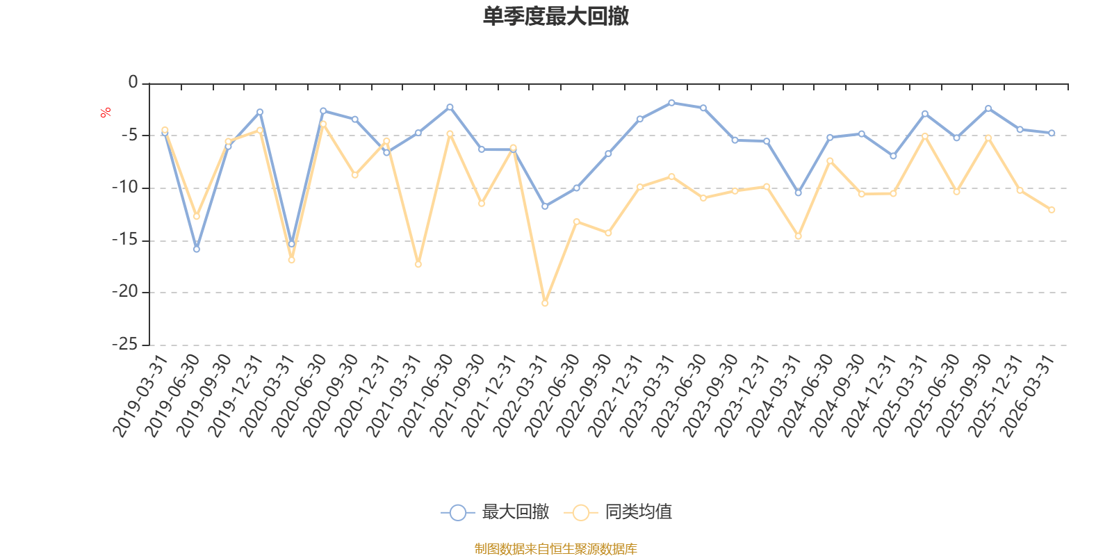截至4月9日,基金近三年最大回撤为16.42%,同类可比基金排名4/125。单季度最大回撤出现在2019年二季度,为15.84%。