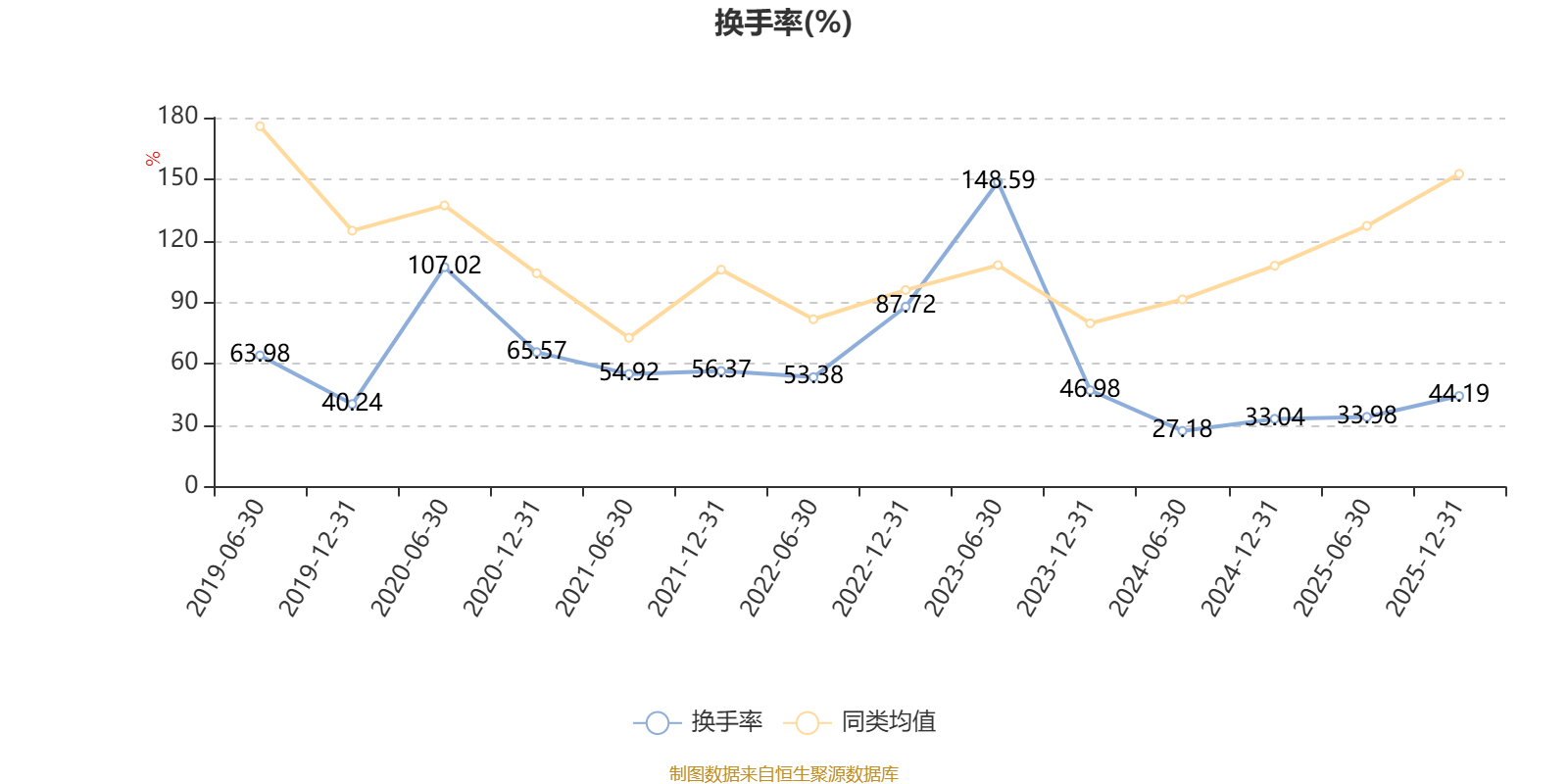 截至2025年12月31日,基金最近一年换手率约77.97%,持续2年低于同类均值。