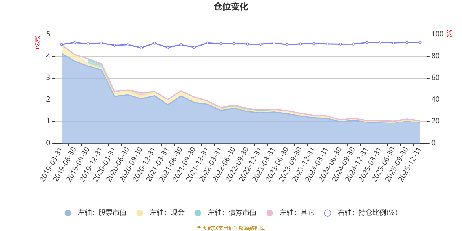 据定期报告数据统计,近三年平均股票仓位为91.99%,同类平均为85.83%。2025年一季度末基金达到93.14%的最高仓位,2020年三季度末最低,为87.86%。