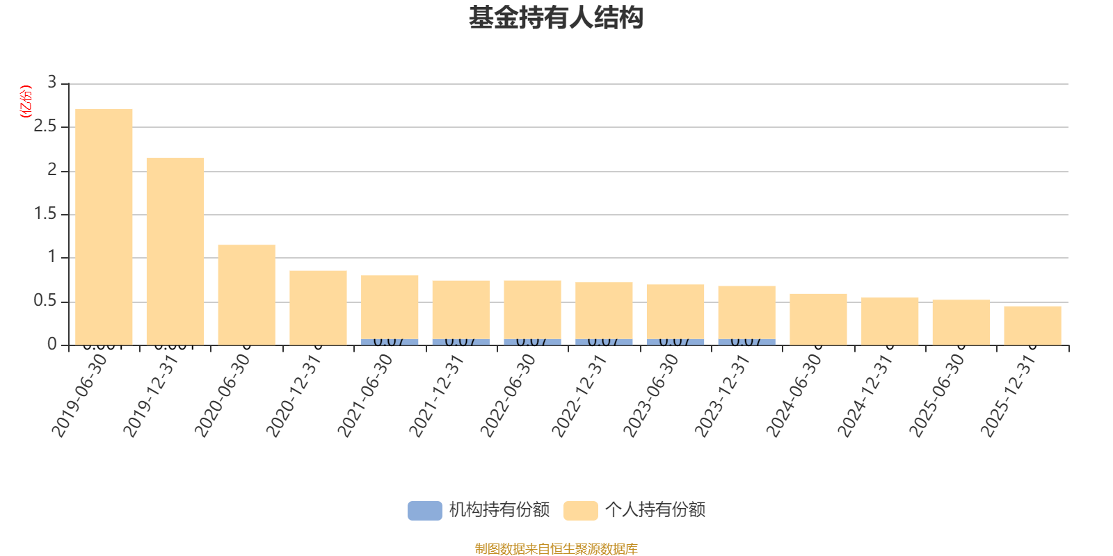 截至2025年12月31日,基金持有人共计2.8万户,合计持有4444.56万份。其中管理人员工持有3.65万份,占比0.08%,机构持有份额占比0.00%,个人投资者占比100.00%。