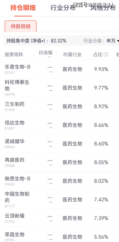 该基金前十大持仓中乐普生物-B、科伦博泰生物、三生制药、信达生物、诺诚健华、再鼎医药、映恩生物-B、中国生物制药、云顶新耀、荣昌生物跌幅较大,前十持仓占总持仓的82.32%,基金风格偏向医药行业。基金净值相对跑输市场(属于医药行业创新药方向的跨市场主动型混合基金)【基金规模0.01亿元】。
