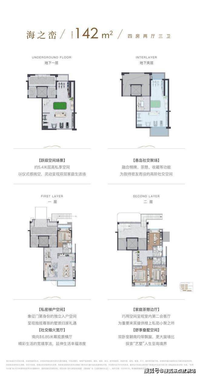 地下一层及夹层空间,层高约5.4米,可以根据业主需求,打造影音室、健身房、酒窖、棋牌室等各种欢娱空间,为美好生活添加无限可能。